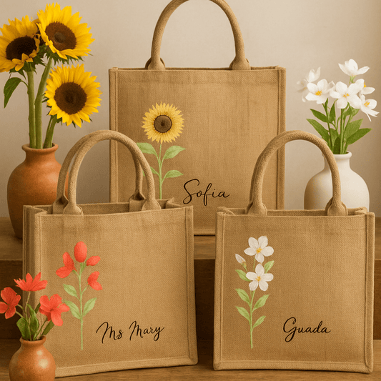Bolso de yute ecológico / Tote Bag personalizada con nombre y diseño floral