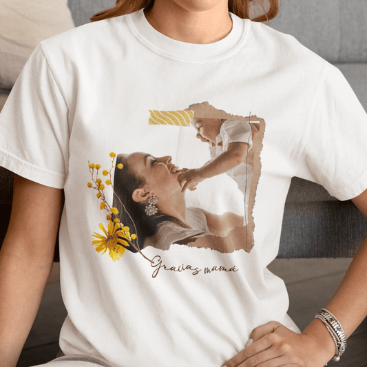 💐👩👧 Remera Marco Floral con Foto de Mamá | Personalizá la foto de mamá y el nombre