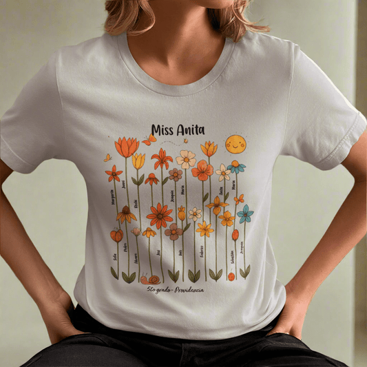 Remera Día del Maestro - Nombre de la maestra y alumnos - Flores