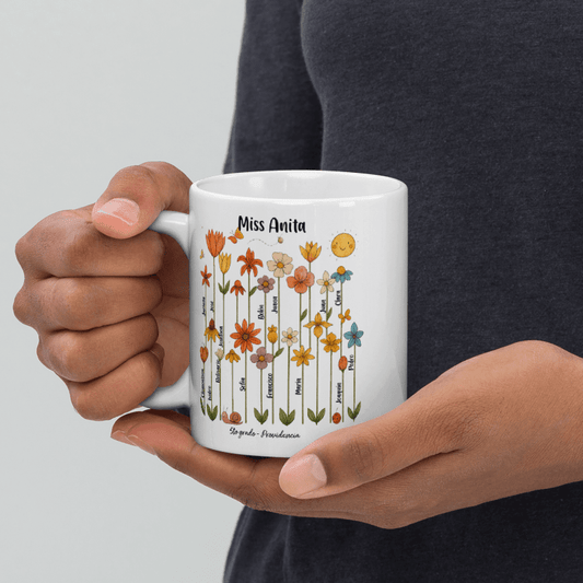 🌸☕ Taza Día del Maestro Personalizada - Nombre de la maestra, alumos y colegio - Flores